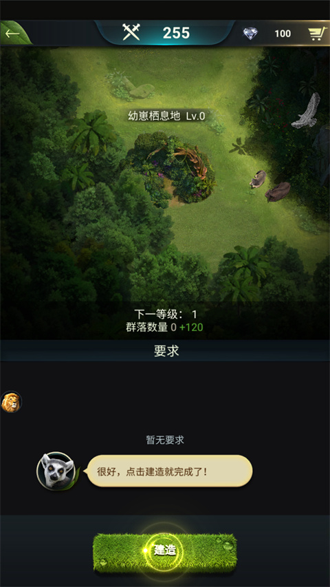 1、建造领地让你的同族们能生存下去,获得食物才是群体生存的关键;