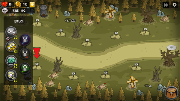 4、怪物想要通往圣地,你要做的就是在这必经之地建设防御塔阻挡它们的前进,一个也不让它们过去。