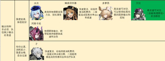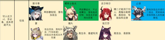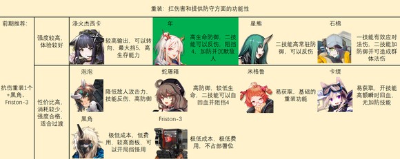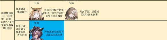 通常部署费用较低,技能与回复部署费用相关,且可以较好地应对前期出现在战场上的敌人。