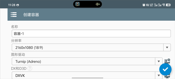 2、选择屏幕分辨率,以及设定显存大小(配置较低的手机显存和分辨率要小点)