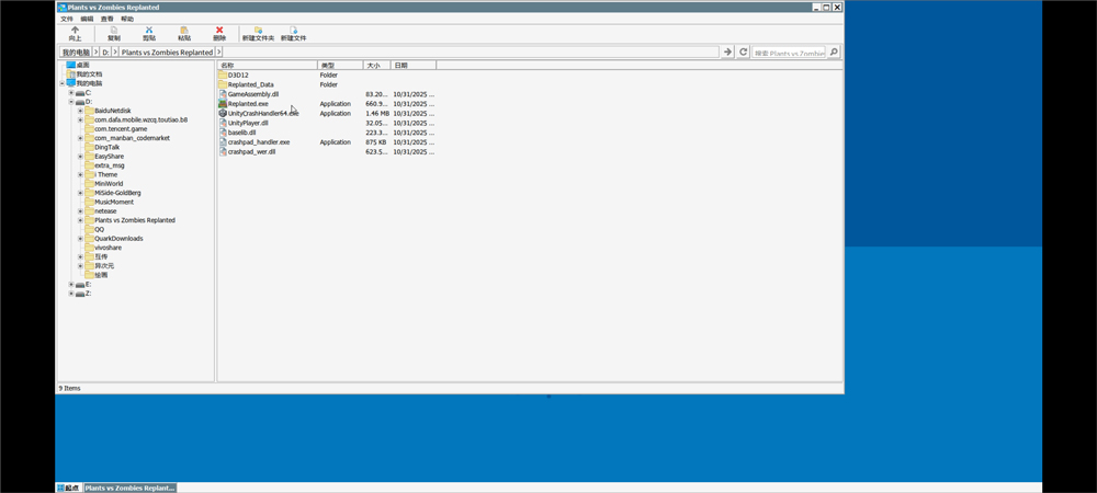 4、进入模拟器后找到D盘-Plants vs Zombies Replanted-找到exe文件,滑动屏幕上的鼠标双击即可启动游戏。