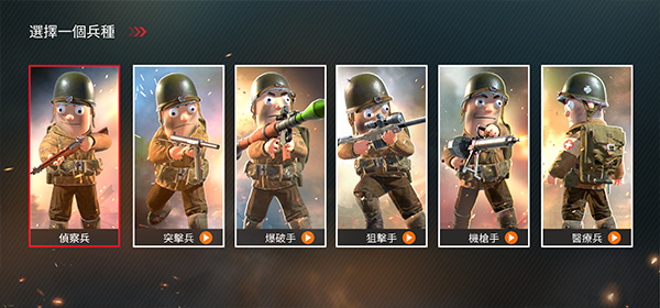 2、在游戏开始之前,玩家需要选择一个兵种,分别有侦察兵、突击兵、爆破手、狙击手、机枪手、医疗兵,每一个兵种的职责都不同,玩家可以根据自己的喜欢进行选择,现在我们选择突击兵进入游戏;