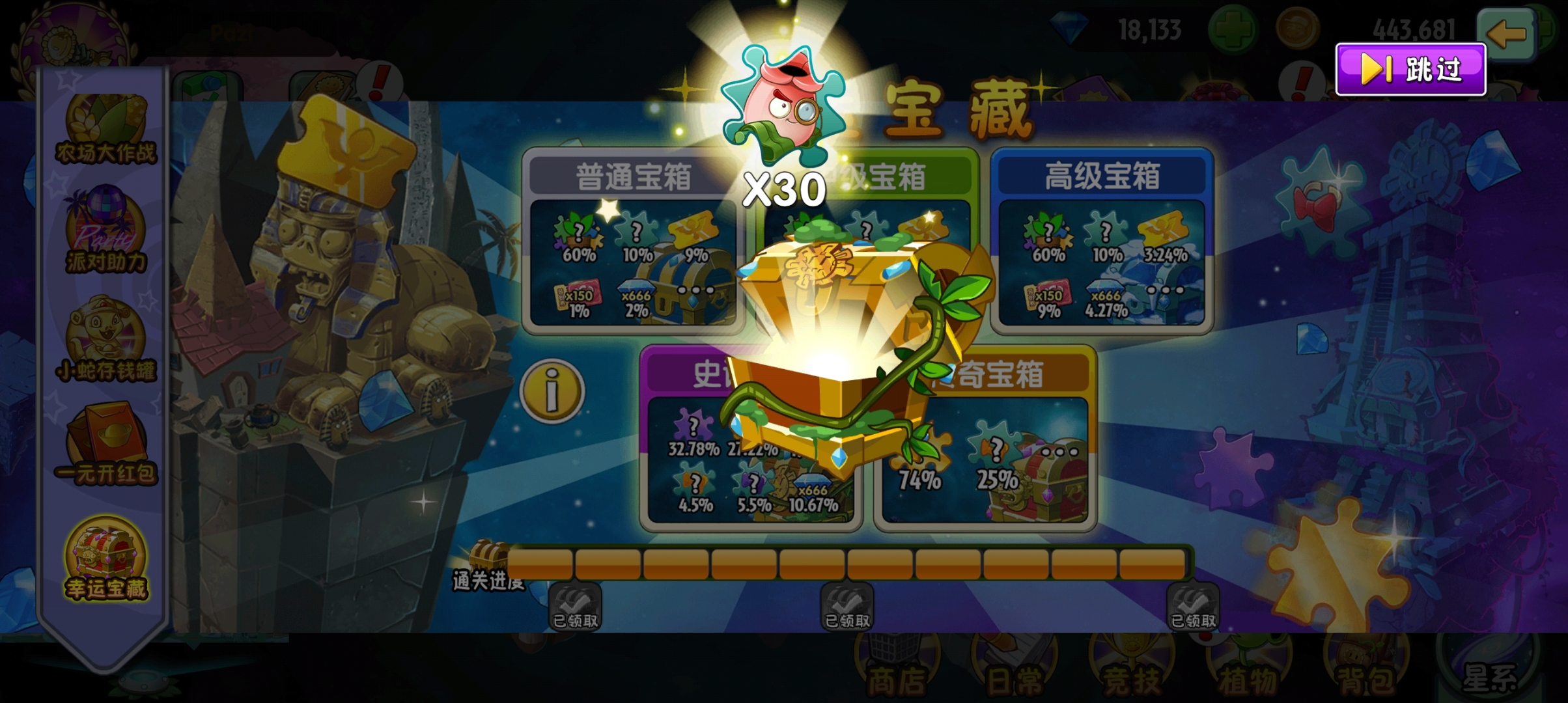 2、直接到第5天,这个是植物探险,可以得到新的植物碎片。第六关,就会出现这种有毯子的僵尸,属于组团型的。