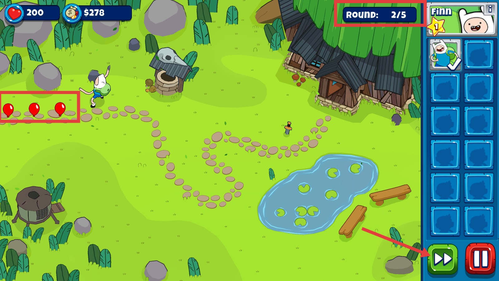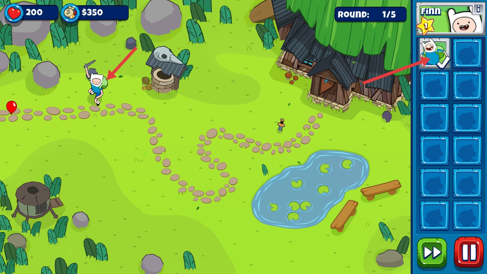 2、选择角色【Finn】,在地图上布置防御。
