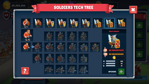 2、第二用作改进兵种方向,兵种的选择有很多,比如骑兵、盾兵、剑士以及攻城车。