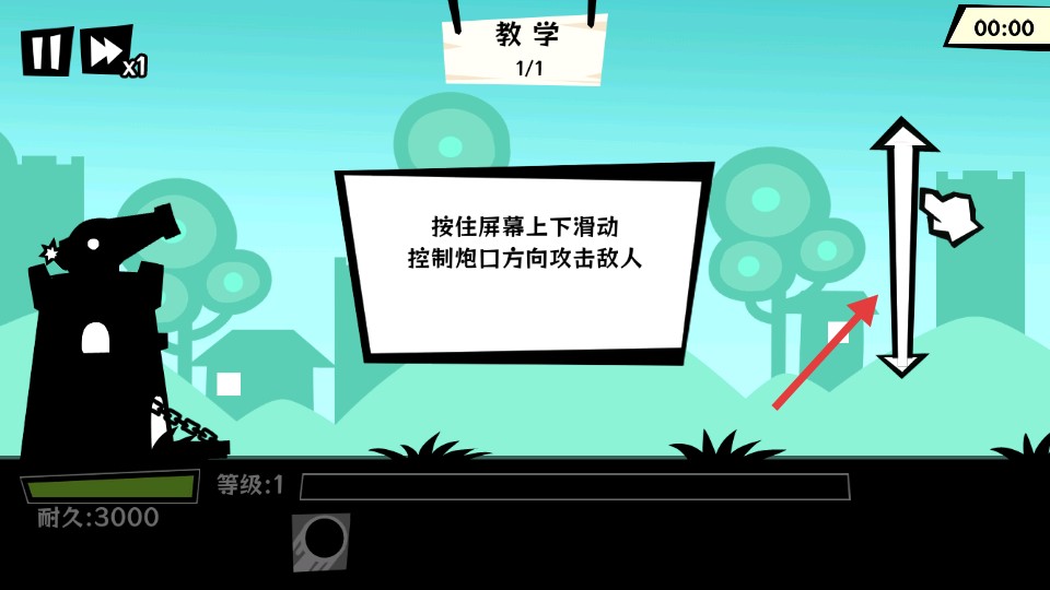 1、当你下载游戏安装后打开,你可以根据游戏的提示来操作,炮台的攻击轨迹可以自行的调节的。