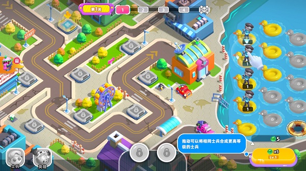 1、在关卡内消耗生命精华可以召唤士兵,每两个相同类型的士兵可以合成更高等级。