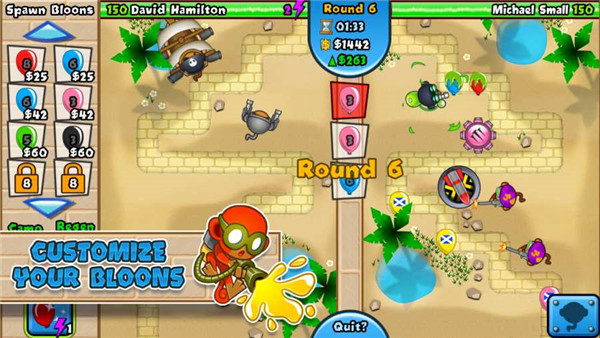 猴子塔防对战是一款采用了可爱卡通风格设计的休闲竞技塔防类游戏。在“猴子塔防对战”这颗游戏中玩家需要在建设防御塔的同时不断地训练制造士兵去进攻敌人基地,直到将敌人的基地彻底摧毁占领为止。这款游戏还支持匹配pk玩家可以匹配不同地区的其他玩家与他们一教高下。