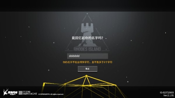 1、打开在本站下载安装的游戏,注册并登录账号,给自己起一个游戏名字,点击确定。
