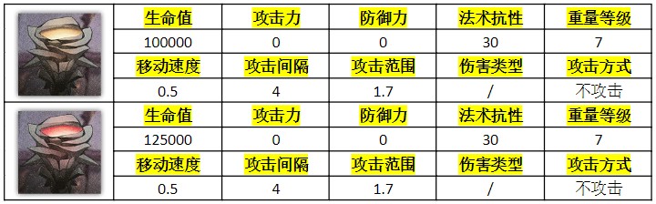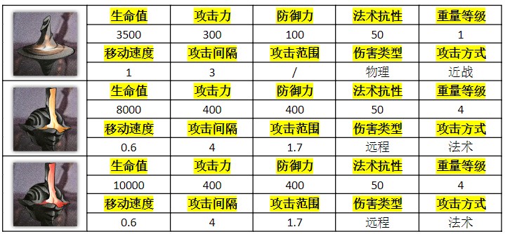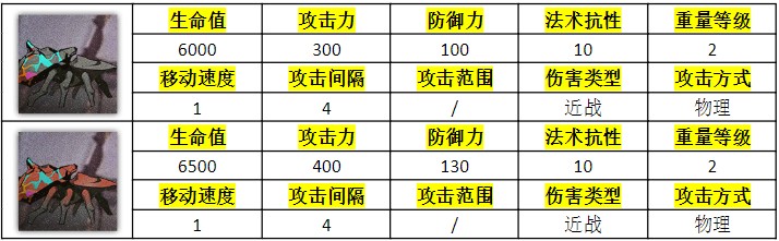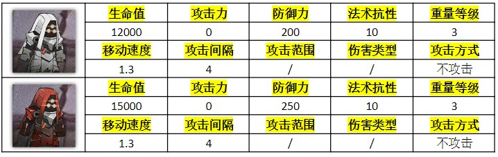 自身不进行攻击,为飞行单位,在场时将会分摊自身周围敌方地面单位所受到的伤害。双抗不算高,但血量相对厚一些,处理时需要花费一定的时间。