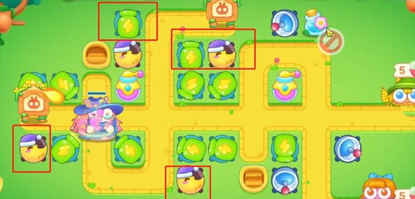 2、第二波在右侧也加一个粉红瓶,之后再最右侧加一地雷。