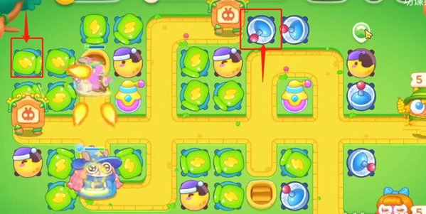 2、第二波在右侧也加一个粉红瓶,之后再最右侧加一地雷。