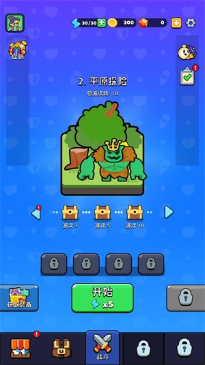 1、启动游戏后进入主界面,点击开始按钮选择关卡并开启冒险之旅。