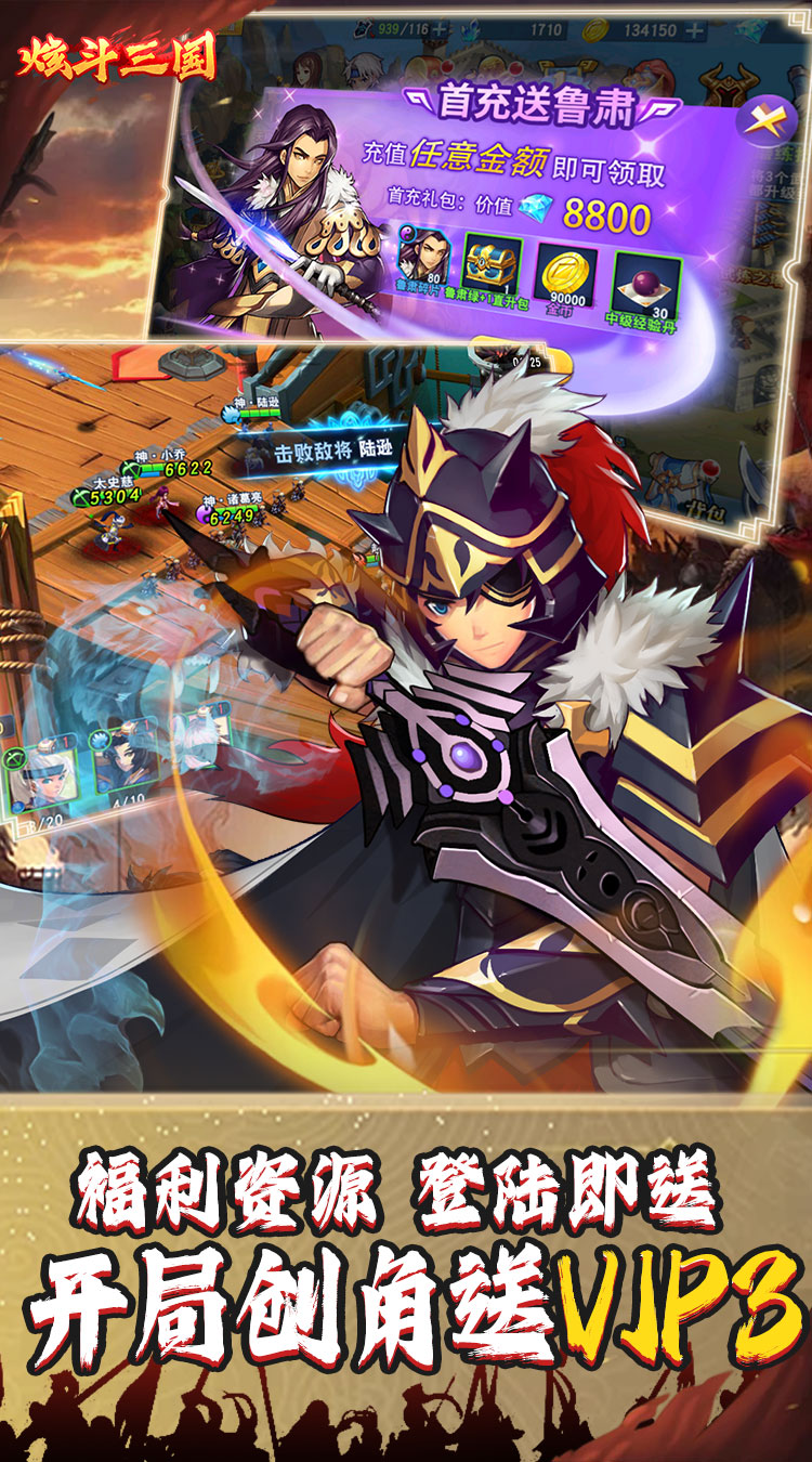 2、超燃三国题材经营卡牌手游,全场0.05折,开局创角送V3。