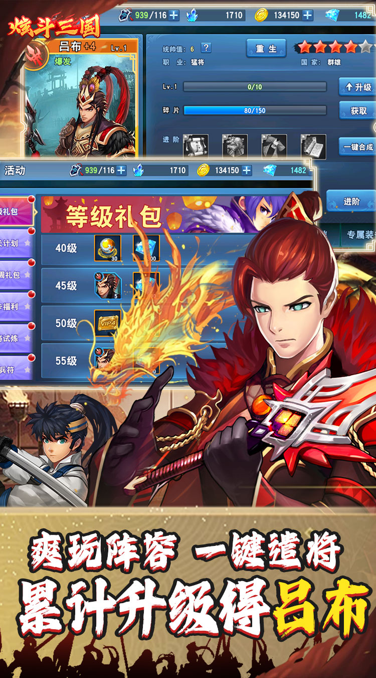 3、累计升级送海量钻石和吕布碎片,助你战力猛涨