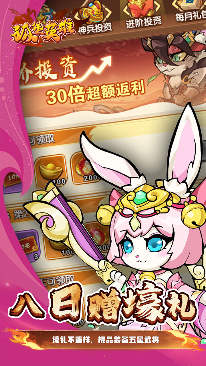 4、海量的福利、畅快的战斗、呆萌可爱的武将,都在游戏中等着您!