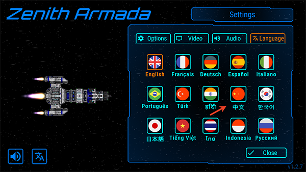1、进入天际舰队游戏内我们点击做下角的语言。