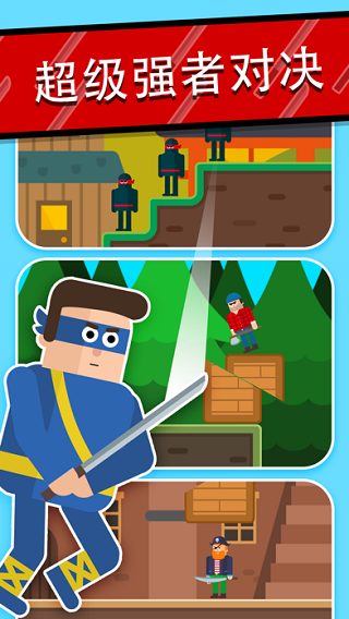 忍者先生飞削谜团是一款以忍者为题制作的休闲动作闯关类游戏。在“忍者先生飞削谜团”这款游戏中玩家将化身成为一位身手矫健的忍者先生,为了世界的和平忍者先生每天都要面对各种各样的敌人。有窃取国家机密的间谍、刺杀重要人物的特工、甚至是僵尸和外星人,在各种关卡中玩家需要利用身上的手里剑依靠关卡中的地形击败这些敌人。