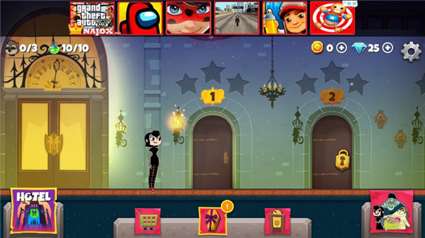 3、奔跑中收集的金币可以用来修葺旅馆。修理旅馆中所有的物件,让琳达姑姑不再禁足梅菲斯!