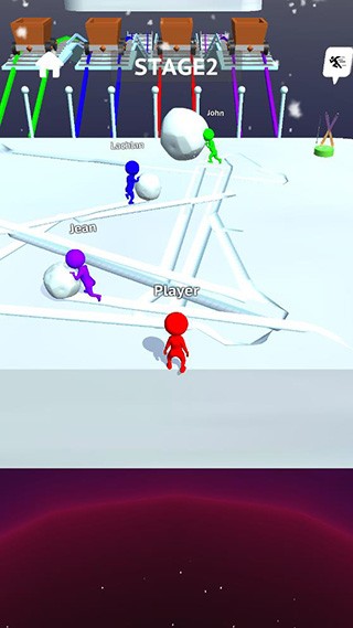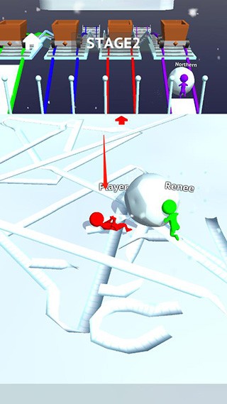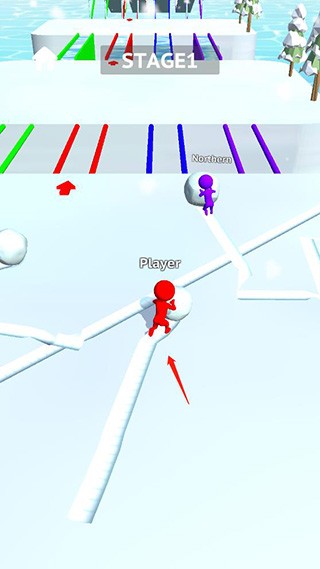 5、雪球足够大后,找到和你一样的颜色,利用雪球铺路过桥;