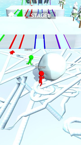 2、游戏玩法很简单,手指滑动屏幕控制小人移动滚雪球;