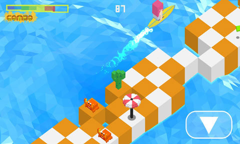 2、点方块进行左右、后退进行跳跃,记得不要错过路上隐藏的许多神奇的道具;