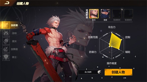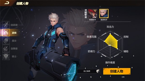 《使命先锋》目前版本中一共开放了5大角色,分别为:剑武者/游侠/魔女/骑士/剑舞者。