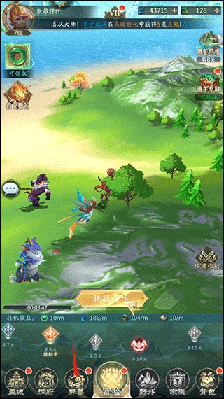 祥云瑞兽和山海奇遇能帮你自动收获道具和积累经验,轻松成长,快速变强!