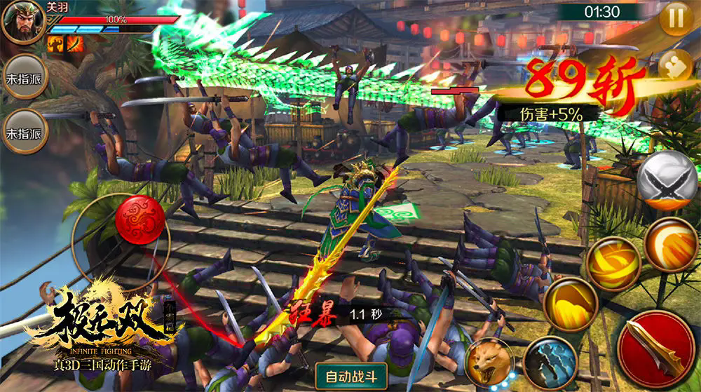 无双:点击无双按钮,若怒气值已满则可释放主角必杀技;