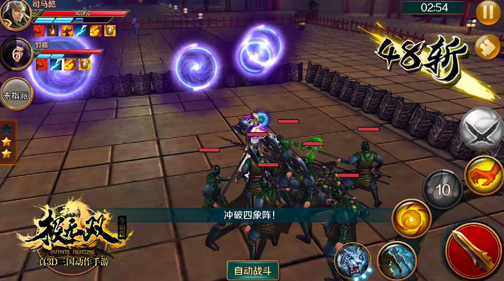 独具三国特色的战斗技能,不仅招式夺人眼球,更能造成全屏AOE效果,畅快横扫敌方战将。