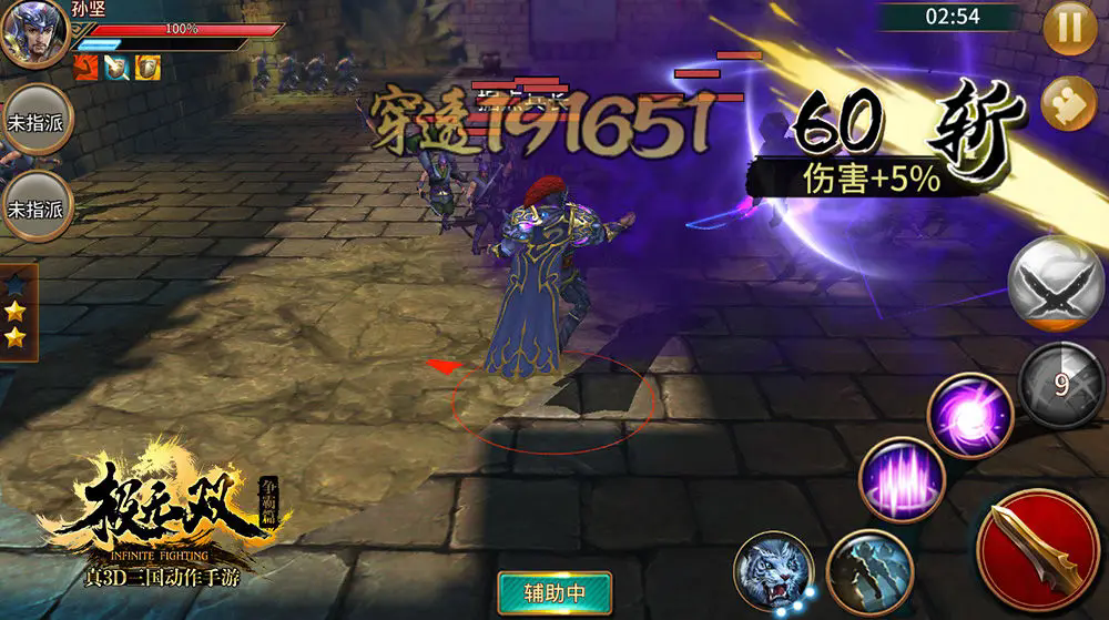 -操作:左侧虚拟摇杆控制走位,右侧虚拟技能按键释放技能。