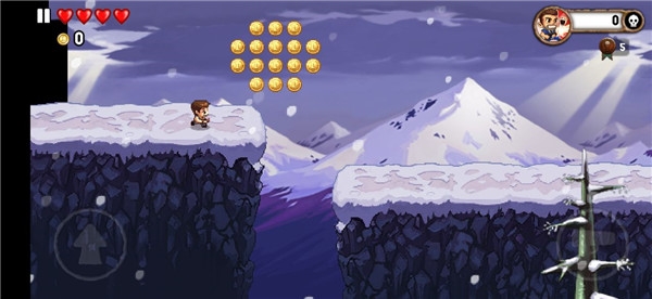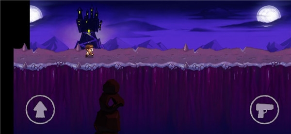 简单的游戏操作,采用虚拟按键模式操控,双手并用游戏不累,左手点击操控人物欢乐的向前跳跃并躲避障碍,右手操控主角帅气的像地方发射子弹,奋勇杀敌,每局小人都有三条顽强又脆落的生命,触碰到敌人或者障碍就会耗费一条小命,但如果不慎掉入悬崖,那就是一命呜呼的节奏了。