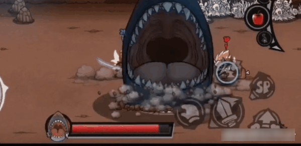 饥饿的鲨鱼是一把外形华丽的火枪类武器,它的制作灵感便是来自于魔鲨BOSS,外观同样是一只凶猛的鲨鱼的模样。最为有趣的要数这把火枪的技能“鲨鱼”了,饥饿的鲨鱼武器本身会向前方丢出一块肉饵,地板会蹦出一条大鲨鱼将肉饵吞噬,并对范围内的敌人造成冲撞。这一技能对于击杀BOSS十分有效,但是对密密麻麻的灵活小怪并不有利,而且有点事倍功半的感觉。