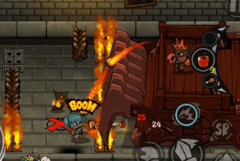 进入boss房间后在看完boss的出场动画之后就会进入本场战斗的阶段一,在这个阶段哥布林国王会命令它的手下开足无敌号的马力冲向玩家,这个时候阶段我们是没有办法对他造成伤害的。而且他的移动速度相当快,并且玩家在往左逃跑的过程中会碰到很多障碍和陷阱,结束这一阶段的方法有3个: