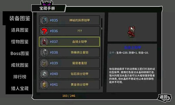 点评:从属性上看是极为畸形的铠甲,但是加血量方面血骑士无人能敌,如果自身道具属性加防御不低的情况下血骑士是很好的选择,选择血骑士血量有可能升到400点以上。