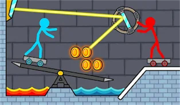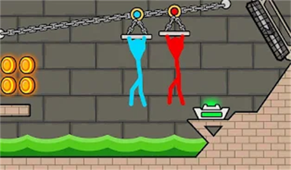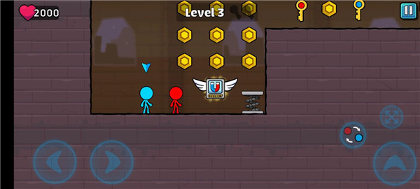 4、玩家需要帮助的红色和蓝色的小人在游戏中。通过相互合作,他们可以避开障碍物和陷阱在一起。