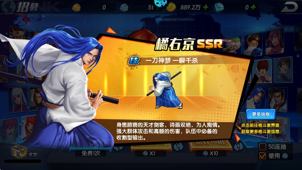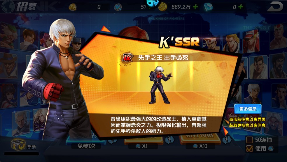 1、喜欢打特效技能的旁友可以尝试走一波灼烧流,需要的英雄有舞、草薙京、草薙菜舟、李烈火、八神和酒鬼。