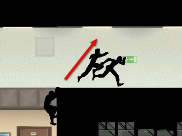 3、是图二上来后的场景,可以看到第一个人的头部前面一点有个类似窗户的东西,在人物到达窗户最左边的位置时跳一下,差不多就是帽子人现在的那个位置。