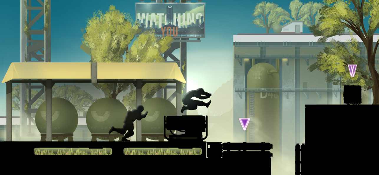2、剪影风格的人物独具特色,地图内容丰富,且内含场景互动