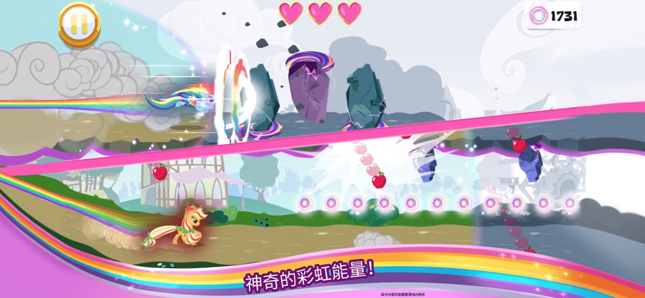 每轮奔跑收集可以收集的小马能量激活你的彩虹能量,可以用之前任务中收集的小马能量来升级彩虹能量。