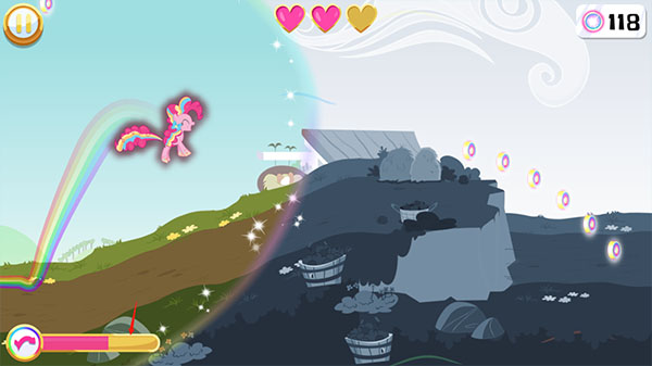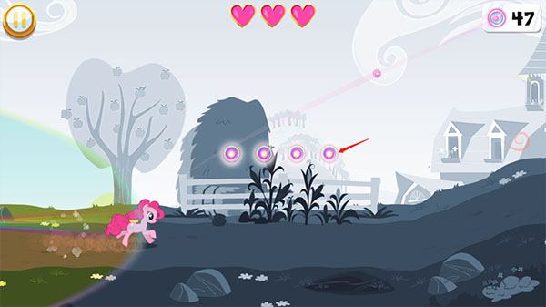 你的小马要用三颗红心才能开始每项任务,每次你遇到障碍物或掉到洞穴里面,就会失去一颗红心。如果你失去了所有的红心,就要重新开始这项任务。