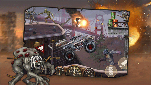 v1.0.3僵尸战车是一款横版驾驶闯关类游戏,游戏以僵尸末日为背景,玩家在游戏中将驾驶自己的僵尸战车对沿途的僵尸进行碾压、冲撞的方式进行消灭。游戏拥有着各种奇形怪状的僵尸,玩家可以根据每一关僵尸的不同来对战车进行个性化改装,通过增添各种武器和升级油箱的方式来使战车更具杀伤力的同时可以行驶更远的距离。