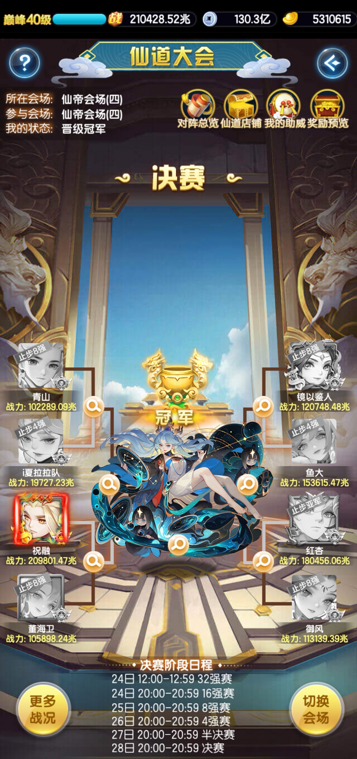 700w攻击概率毕业,首战区着急毕业上龙坑抢位置的可以考虑升☆金幻仙麒麟拼脸控龙(注意了,要稳,不稳得不偿失),道友们自行把握哈!值得一提的是子牙1☆激活御仙有额外总攻击,幻彩本身技能系数比紫金高63%,外加元神提供的每级6%的加持,觉醒合击再大幅提升系数,毕业更快。