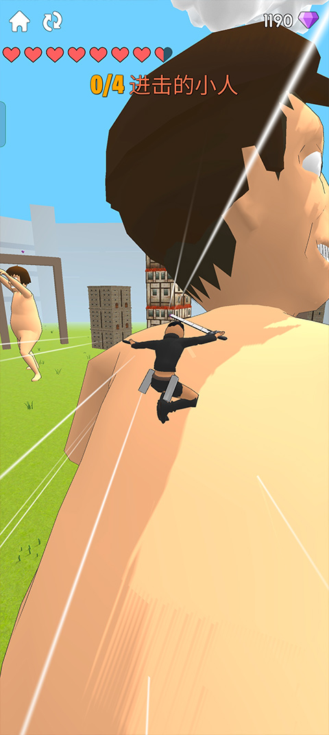 人类大战巨人是一款以人气爆火动漫《进击的巨人》为基础制作的动作闯关类游戏。在“人类大战巨人”这款游戏中玩家可以随意选择你的人类角色,利用砖石解锁游戏内的全新角色。玩家还可以利用砖石升级自己的攻击里以及血量上限,让玩家在关卡中与巨人战斗更加轻松灵活精准的刺中巨人的要害。