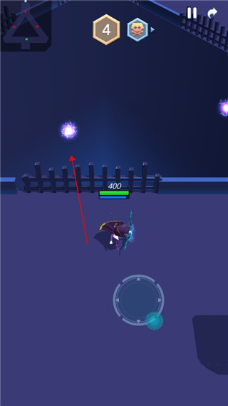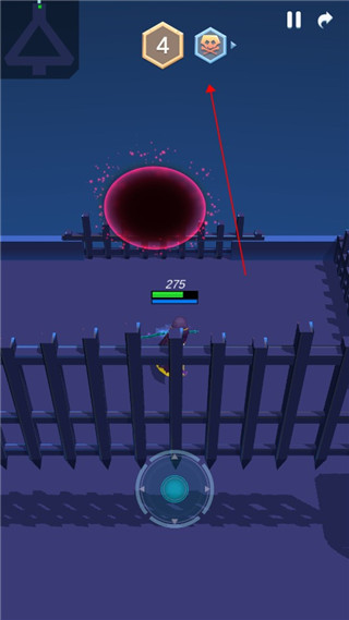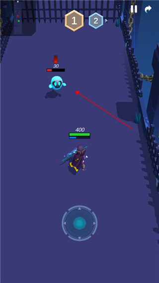 1、进入游戏,拖动轮盘即可移动,当遇见敌人时停止移动就会自动攻击,所以玩家只需要专心走位即可。