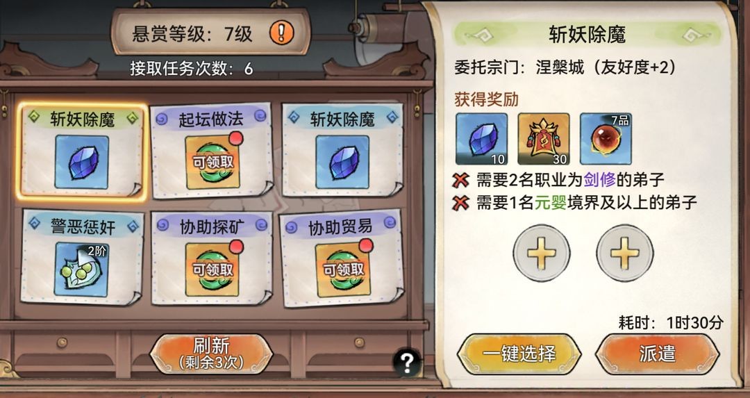 宗门建造悬赏台建筑后,每天可以做6个悬赏任务