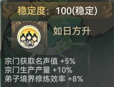 玩家宗门稳定度达到96以上时,可以获得如日方升状态。