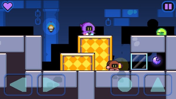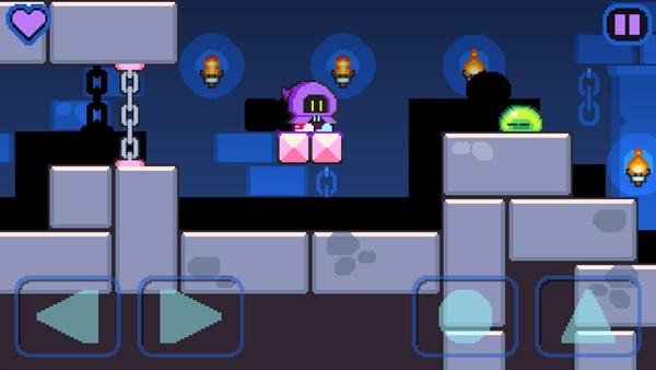 2、点击虚拟按键进行左右移动和跳跃,圆圈按钮可以让你遁入暗影之中。
