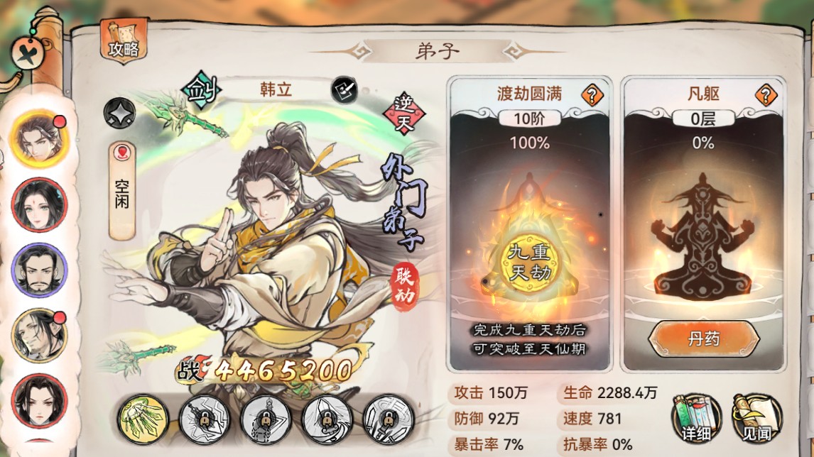 炼体等级每10层需进行突破,突破可大幅提升弟子属性。