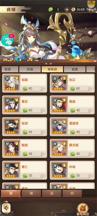 先说必买的,元宝买名将册,铜钱买四星的碎片英雄经验演武令,在元宝充足的情况下,即是遇到招贤令,一定要拿下